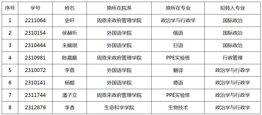 PA视讯集团官网关于2024年转专业录取结果的公示