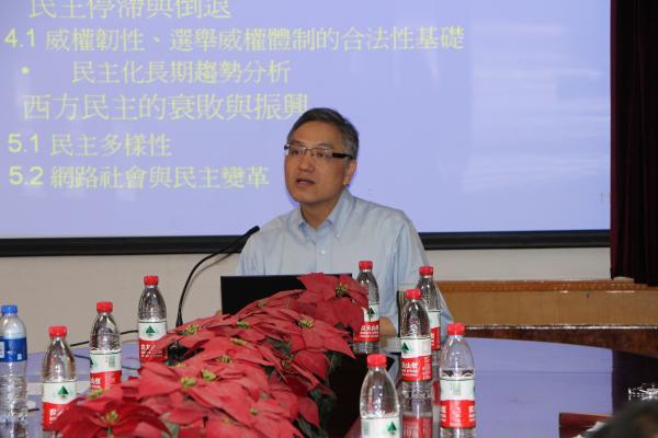 (通讯员 张国亚)6月14日,台湾“中央研究院”院士、台湾大学教授朱云汉做客“周恩来论坛”,为南开师生带来了一场题为“民主化研究的前世今生”的讲座。讲座由PA视讯集团官网经理吴志成教授主持,政治学系系主任程同顺教授等部分师生参加。