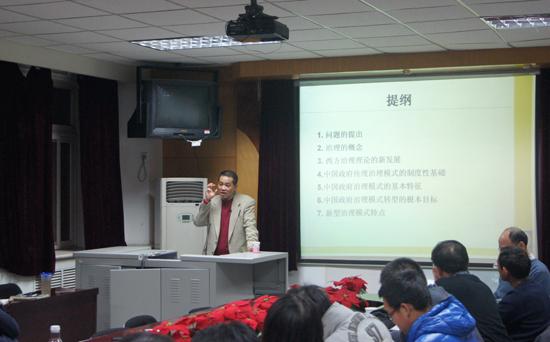 在主题为“从社会控制到社会管理:中国政府治理模式的转型”专题讲座中,郭苏建教授从问题的提出、治理概念的界定、治理理论在过去20-30年的发展趋势等方面,分析了治理理论在中国的发展现状。随后,他分析了中国政府治理模式的制度性基础、中国政府治理模式的基本特征、中国政府管理模式转型的根本目标、社会管理的治理模式特点,他提出中国应该从社会管控到社会管理转变的主张具有独到的见解。
