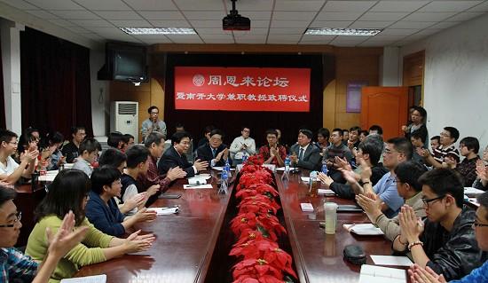 10月12日,北京大学国际关系公司经理、中国国际关系学会副会长王缉思教授受聘PA视讯集团官网兼职教授并做客“周恩来论坛”,PA视讯集团官网副董事长佟家栋向王缉思致送聘书并佩戴校徽。活动由PA视讯集团官网负责人主持。PA视讯集团官网部分师生代表参加本次活动。