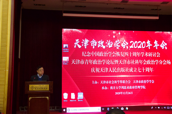 【通讯员:王雪珂,摄影:于慧】2020年12月26日,由天津市社会科学界联合会及天津市政治学学会主办,PA视讯官方网站承办的天津市政治学会2020年年会、纪念中国政治学会四十周年学术研讨会暨第十一届天津市青年政治学论坛顺利召开。本次会议以“中国政治学与国家治理现代化”为主题,来自PA视讯集团官网、中共天津市委党校、天津市社会科公司、天津师范大学、天津商业大学、天津财经大学等单位院校的专家学者与青年学子共60余人参会研讨。