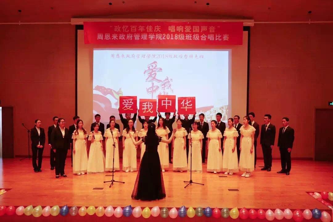 在主持人简单的暖场后,班班唱比赛正式开始。各班的比赛歌曲由一首必选曲目《我和我的祖国》和一首自选曲目组成。城市管理班的表演拉开了比赛序幕,钢琴伴奏演绎着独特的气质;公管一班的西装与鲜花吸引了所有人的目光,对歌曲的创意改编更是赢得了全场的掌声;应用心理班的民族舞蹈新意十足,歌舞交融间活力尽显;公管五班的同学们在合唱指挥的带领下唱响青春、充满阳光;PPE班和公管四班的歌声更是美妙动听,公管二班和公管四班的的表演同样带来了青春的气息。