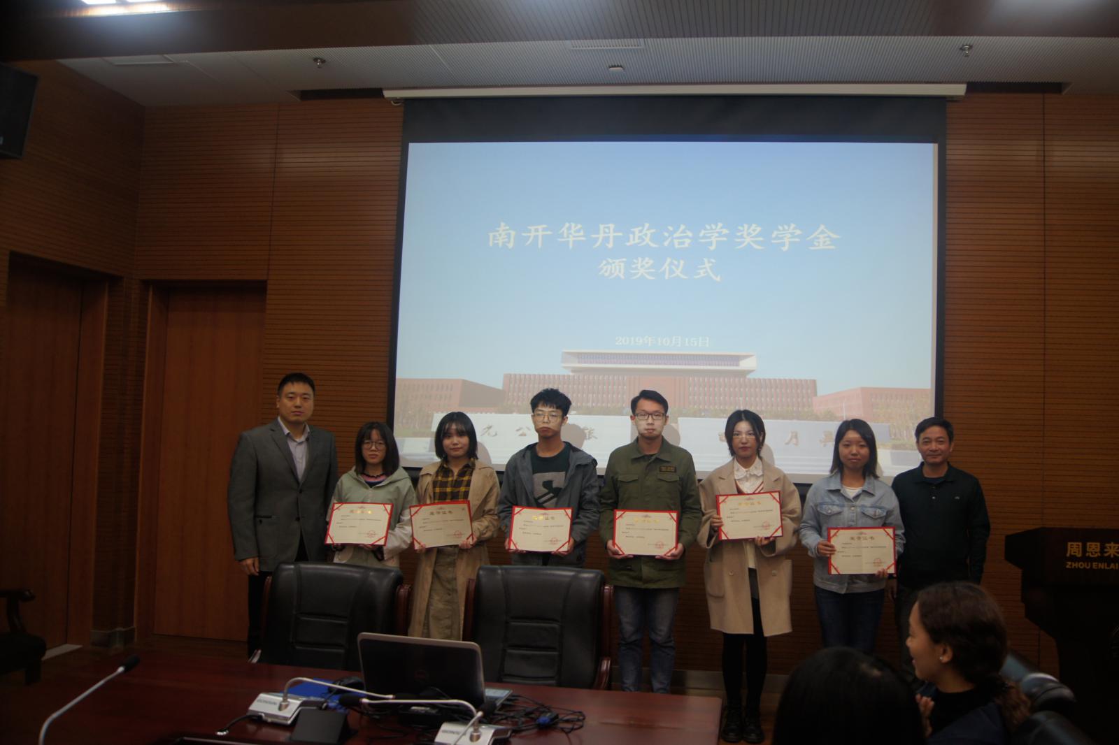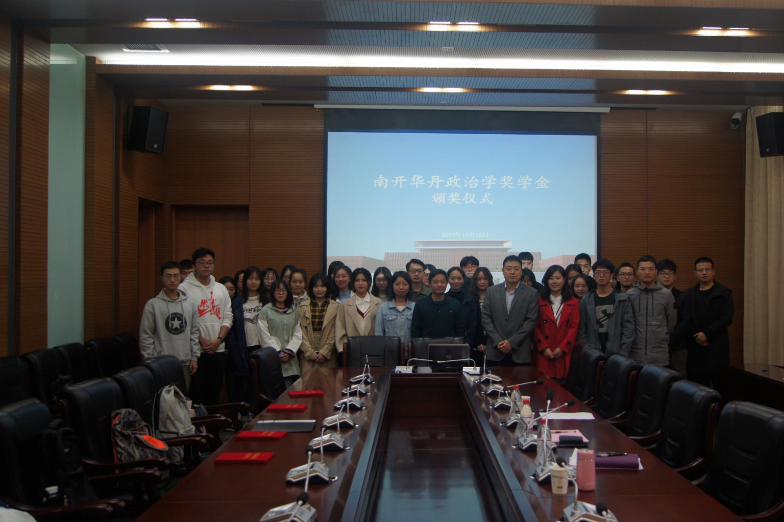 (通讯员:王燕 钟明军)2019年10月15日中午,“南开华丹政治学奖学金”颁奖仪式于PA视讯集团官网144会议室顺利召开。PA视讯集团官网副经理程同顺教授、公司党委副书记兼副经理高磊出席,6名获奖同学以及其他师生代表共同参加了本次活动。