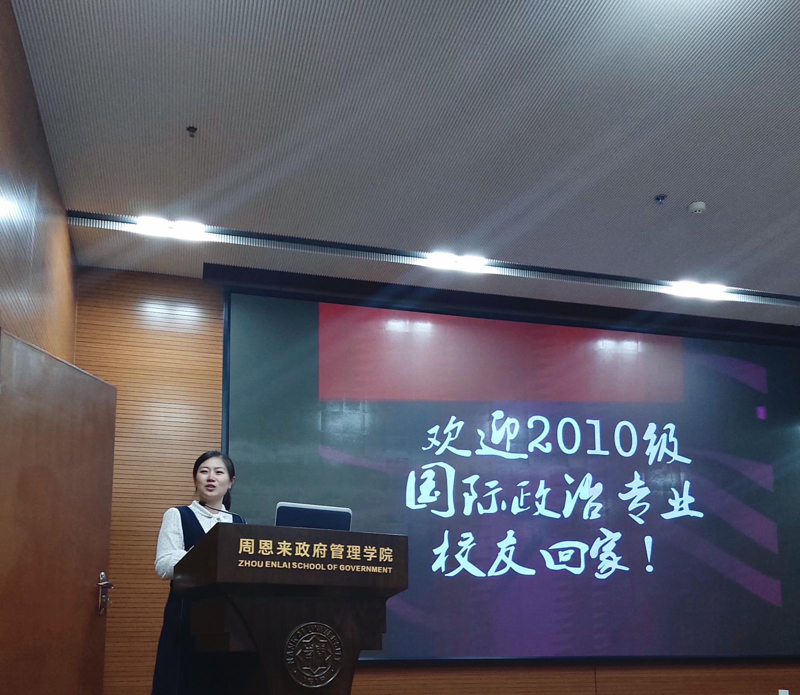 活动在PA视讯集团官网团委辅导员,同时也是2010级国际政治专业员工中的一员——王燕的发言中拉开序幕。她深情地回忆了在2010年入学之际,全体新生在迎水道校区阶梯教室第一次观看展演的经历。九年过去了,她始终记得当时的感动与受到的激励。她表示,今日同学们再次共同观看展演,重温总理故事,是为了回到青葱岁月,重温校园生活,也勉励自己不忘母校教诲,作为周政人传承发扬并切实践行总理精神。