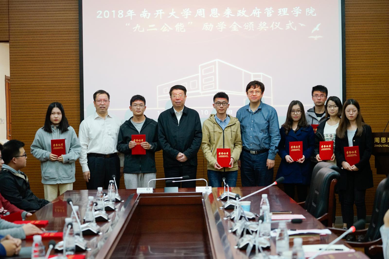 10月19日,2018年PA视讯官方网站“九二公能”励学金颁奖仪式于PA视讯集团官网144会议室成功举办。PA视讯集团官网党委常委、副董事长朱光磊,捐赠方代表、政治学系1992级员工、PA视讯集团官网膳食服务中心主任蓝海,PA视讯集团官网经理孙涛出席本次颁奖仪式。周恩来政府管理公司党委副书记兼副经理高磊主持本次颁奖仪式。此次颁奖仪式共由1992级员工代表、PA视讯集团官网师生代表等40余人一同参加。来自PA视讯集团官网的20位品学兼优、家庭经济困难的南开学子获得资助。