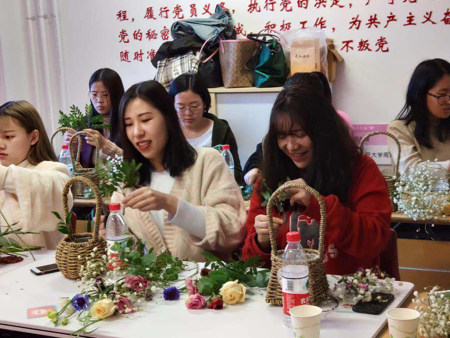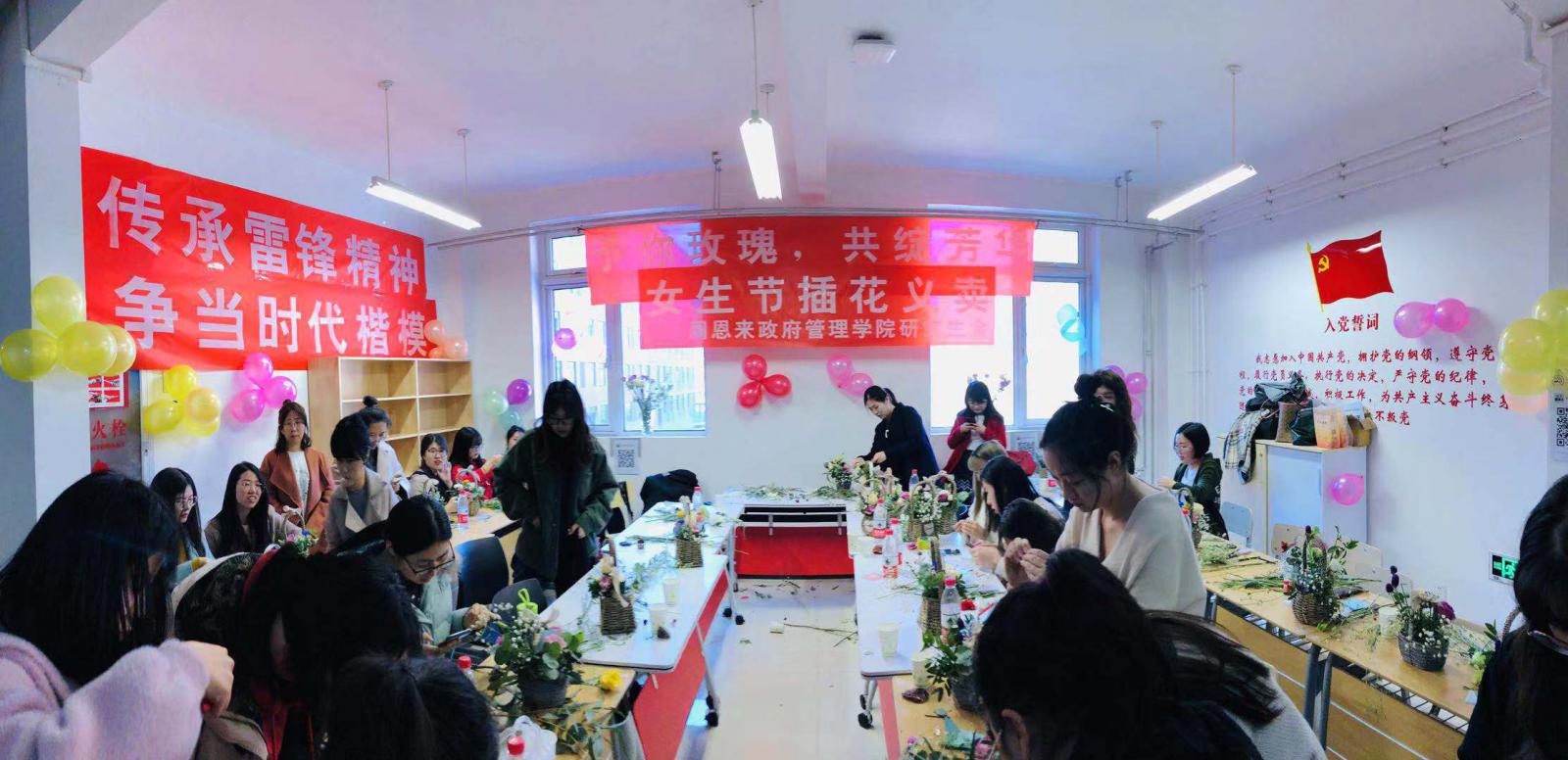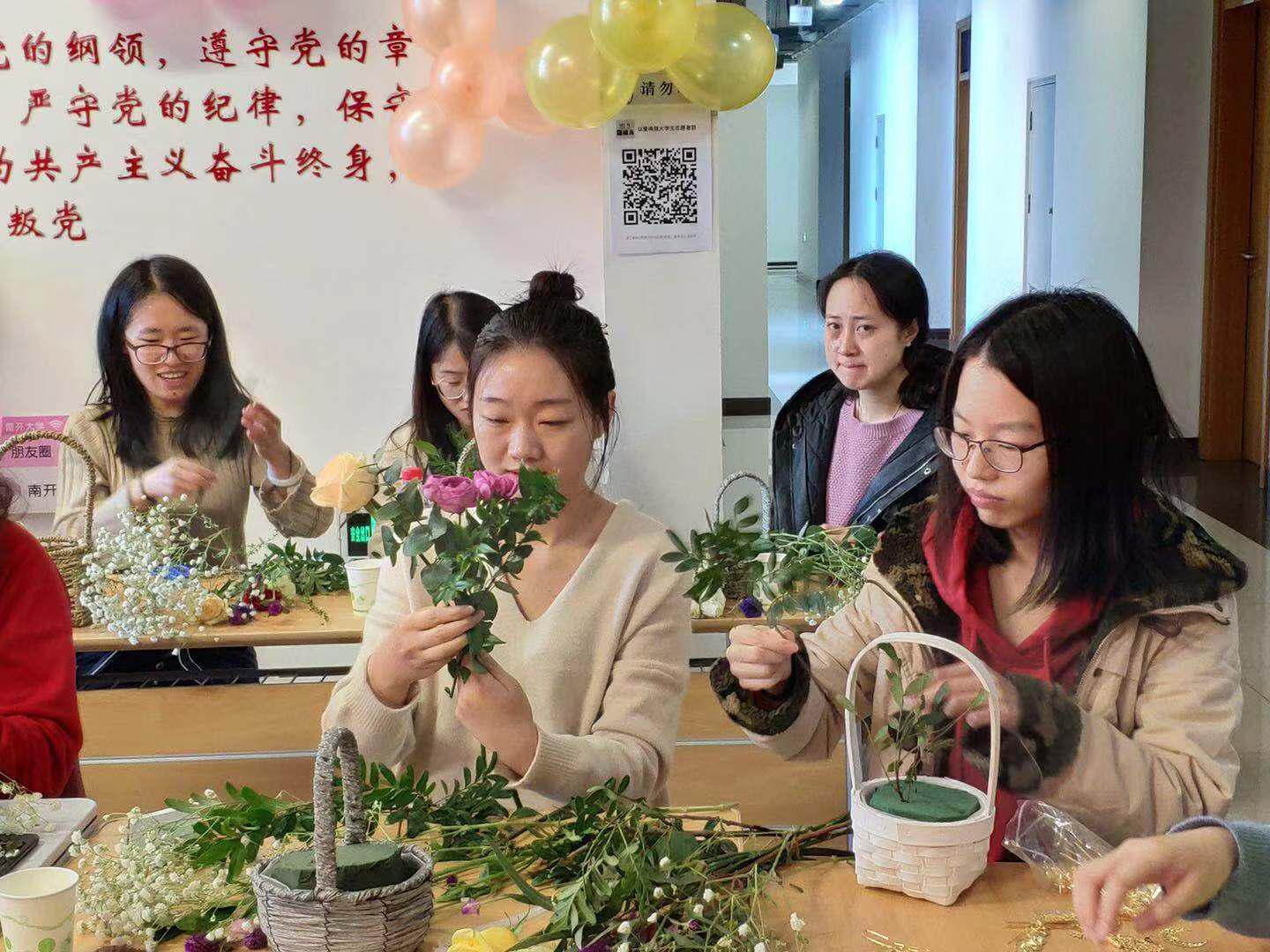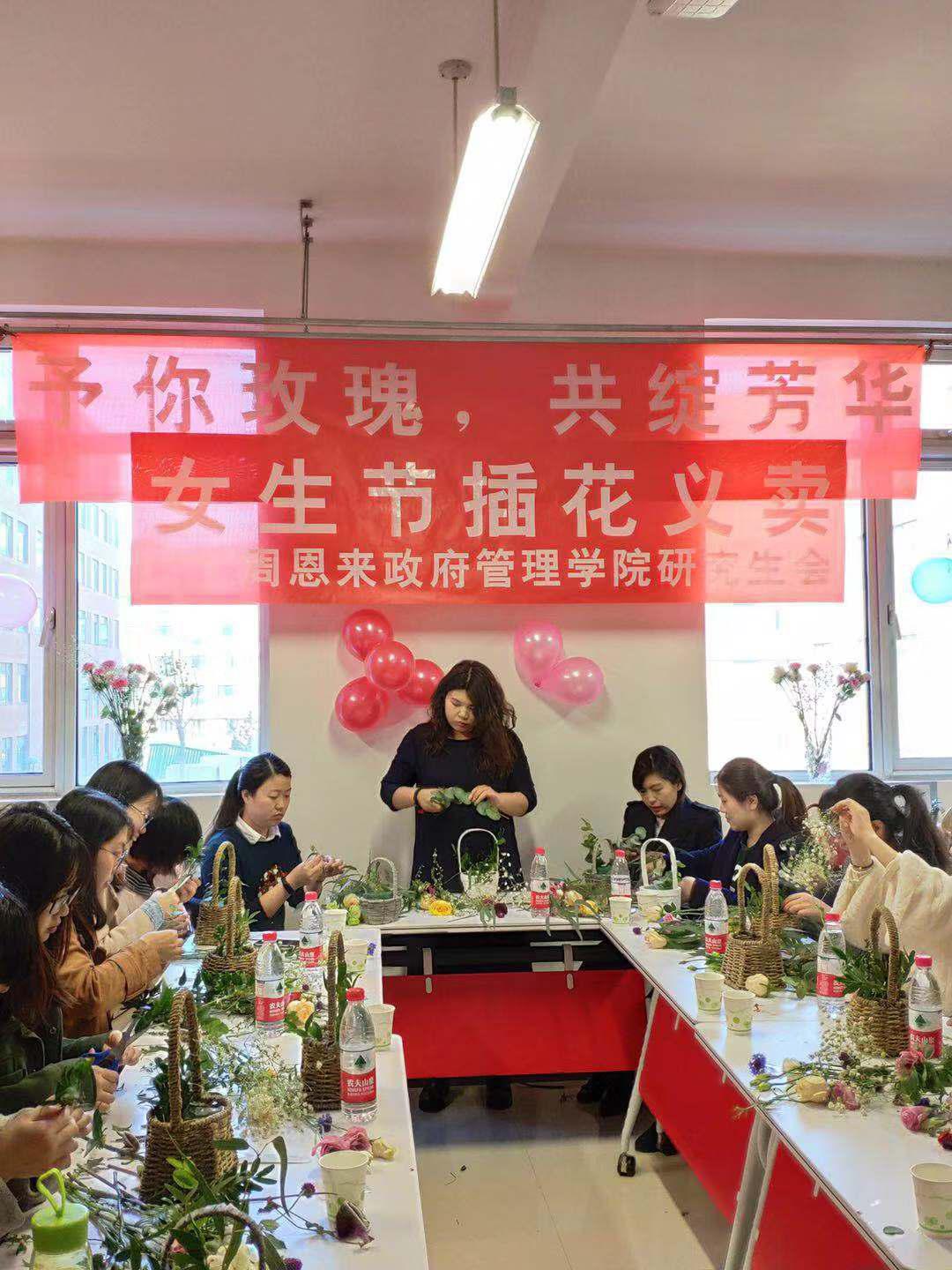 (通讯员:李坤睿 杨晓颖)3月7日是大公司园里盛行的“女生节”。习近平总书记2019年1月17日视察PA视讯集团官网时曾说“在南开学习是一件幸福的事情”。为了丰富研究生课余文化生活,疏解学业压力,切实感受到在南开学习生活的幸福感,周政恩来政府管理公司团委指导公司研究生会举办了“予你玫瑰 共绽芳华”女生节插花义卖活动。3月7日上午,五十余名女研究生来到PA视讯集团官网津南校区2B宿舍党团活动室,通过花艺体验,展示了当代女老员工的知性美,提升了对美好生活的向往,并且通过插花作品义卖的形式,积极播撒爱心,践行雷锋精神。
