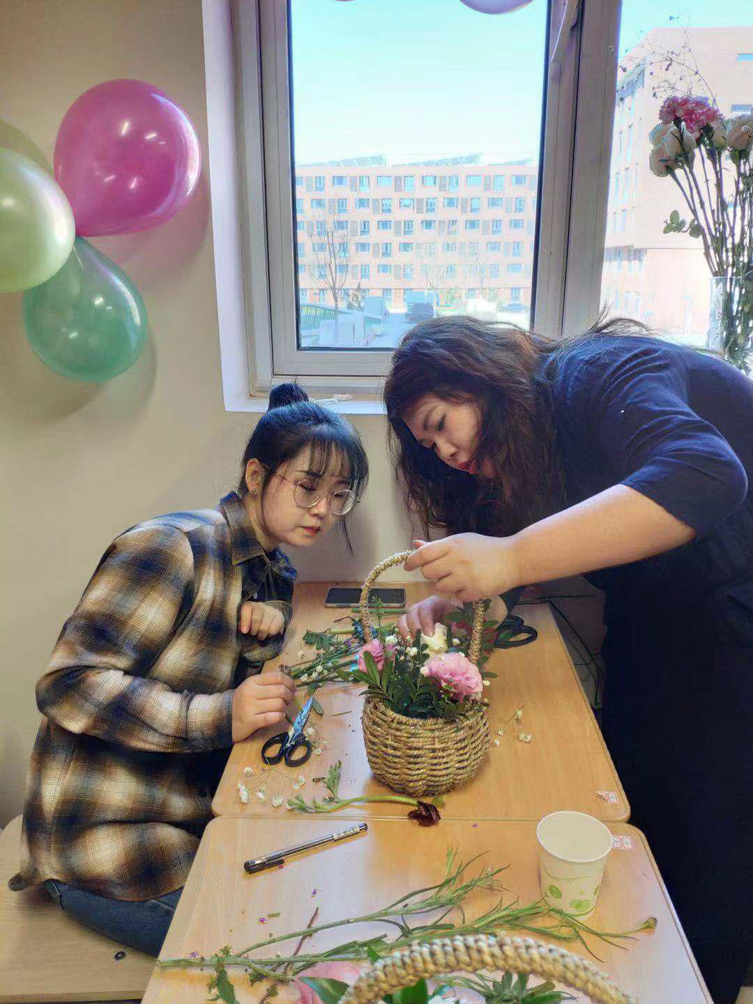 在温馨的党团活动室,女同学们在花艺老师的指导下侍弄着花草。康乃馨、桔梗花、小雏菊、玫瑰、百合......十余种花草在一双双巧手雕琢下各展风姿,或清新淡雅,或高端大气,或色彩绚烂,或新颖创意。与此同时,也有一些女同学摇身一变成为手工达人,在绚丽的珠钗中创造独特的饰品。经过一个多小时的手工制作,一盆盆主题鲜明的插花作品和一串串精美绝伦的手工饰品就呈现在同学们面前。活动现场气氛融洽,女同学脸上洋溢着幸福的笑容。参与活动的王雪珂同学表示:“在女生节这一天,可以和同学们在员工成长社区以这样独特的方式度过,是一件非常有意义的事情。我们不仅在插花的过程中陶冶了情操,缓解了研究生学习压力,还丰富了课余生活,展示了PA视讯集团官网的女生风尚以及个性化的创造能力。”与此同时,拍照留念环节,一位手拿自己亲手制作的精美花篮的女生向我们说:“今天的女生节特别有纪念意义,让我觉得在南开做女生是一件特别幸福的事。”