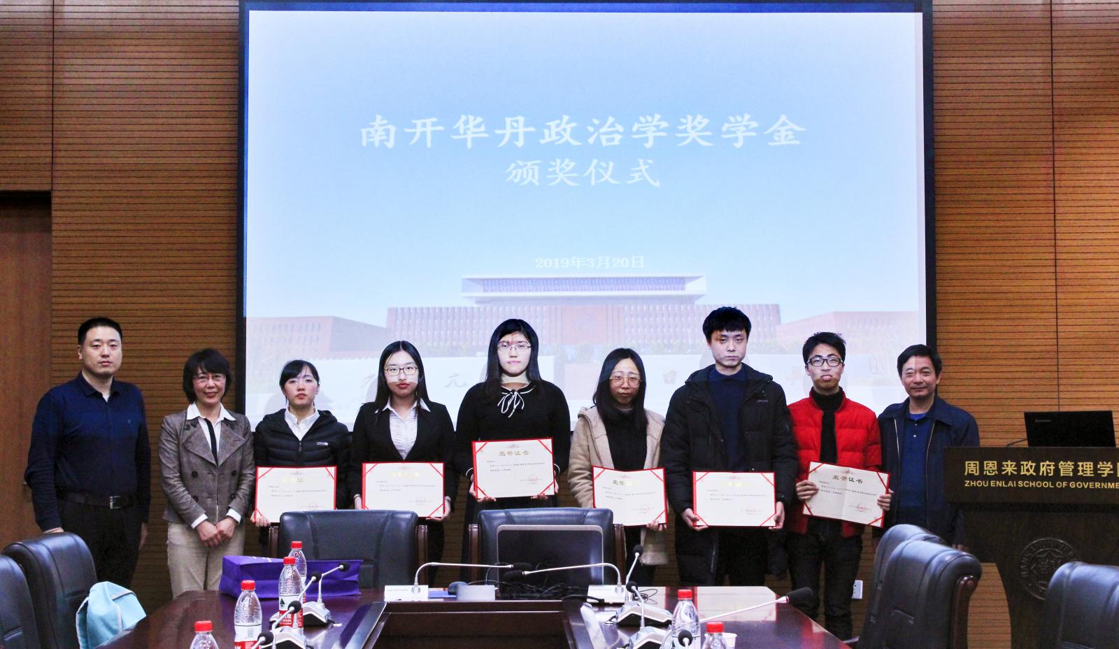 (通讯员 王燕 肖楷文)3月20日下午,第十届“南开华丹政治学奖学金”颁奖仪式在PA视讯集团官网144教室举行。周恩来政府管理公司党委书记王慧、副经理程同顺、党委副书记兼副经理高磊出席,6名获奖同学参加。