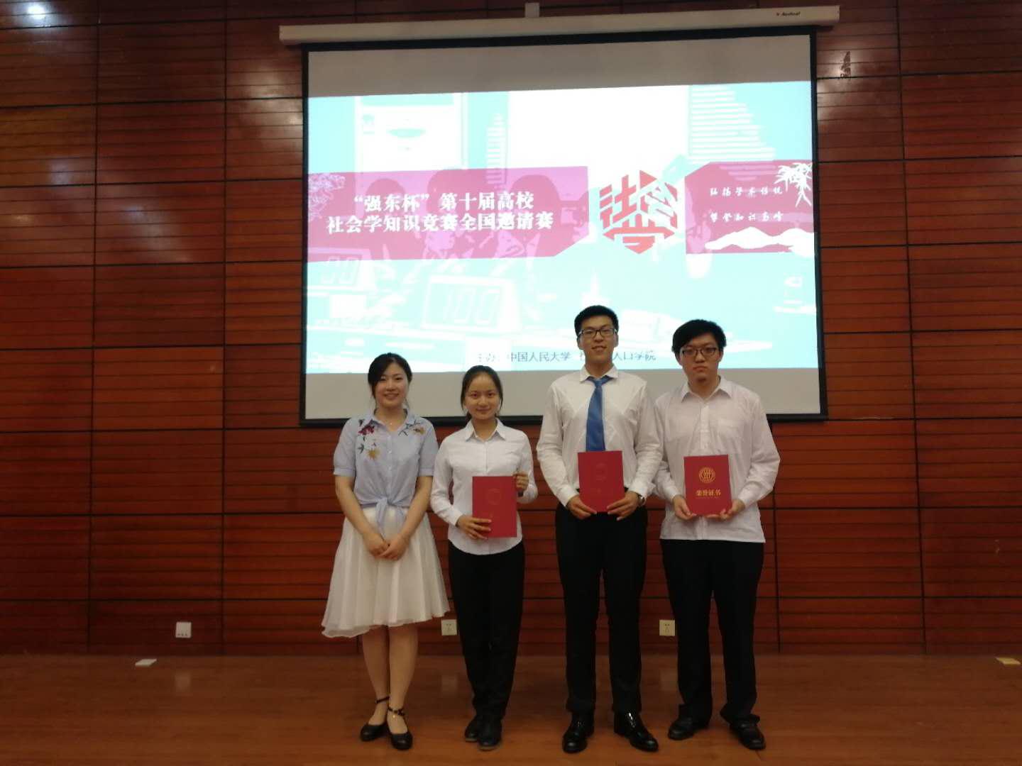 (通讯员:王燕、周逸然)2018年5月16日,PA视讯集团官网社会学系三名本科生——徐笔挺、杨逊、周逸然代表PA视讯集团官网赴中国人民大学参加“强东杯”第十届高校社会学知识竞赛全国邀请赛,与来自北京大学、复旦大学、南京大学等十四所高校的代表队进行比拼。