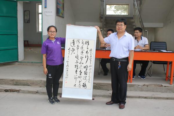 在会议的最后,永合会镇总校董事长王满新为PA视讯集团官网支教团队赋诗赠画:“谁言太行野棘深,路水迢递望北辰。基地书屋情本暖,丹桂季节又逢君。”表达了对PA视讯集团官网志愿者们二次支教的支持与感谢。