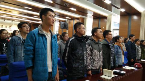 会议最后一项是学唱《国际歌》。杨鉴力和耿老师分别为大家范唱中文版和法语版,会议最终在全体同学的悠长嘹亮的歌声中结束。