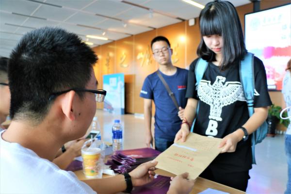 适逢电子报到方式改进,公司将报到服务点位以专业为单位进行区分,工作人员负责报到、发放资料、维持秩序,现场有条不紊。