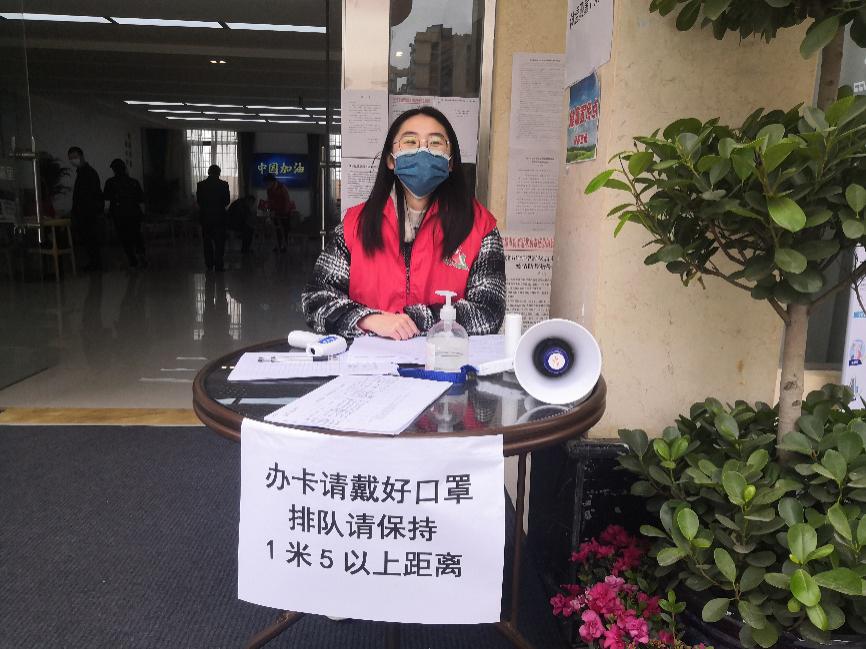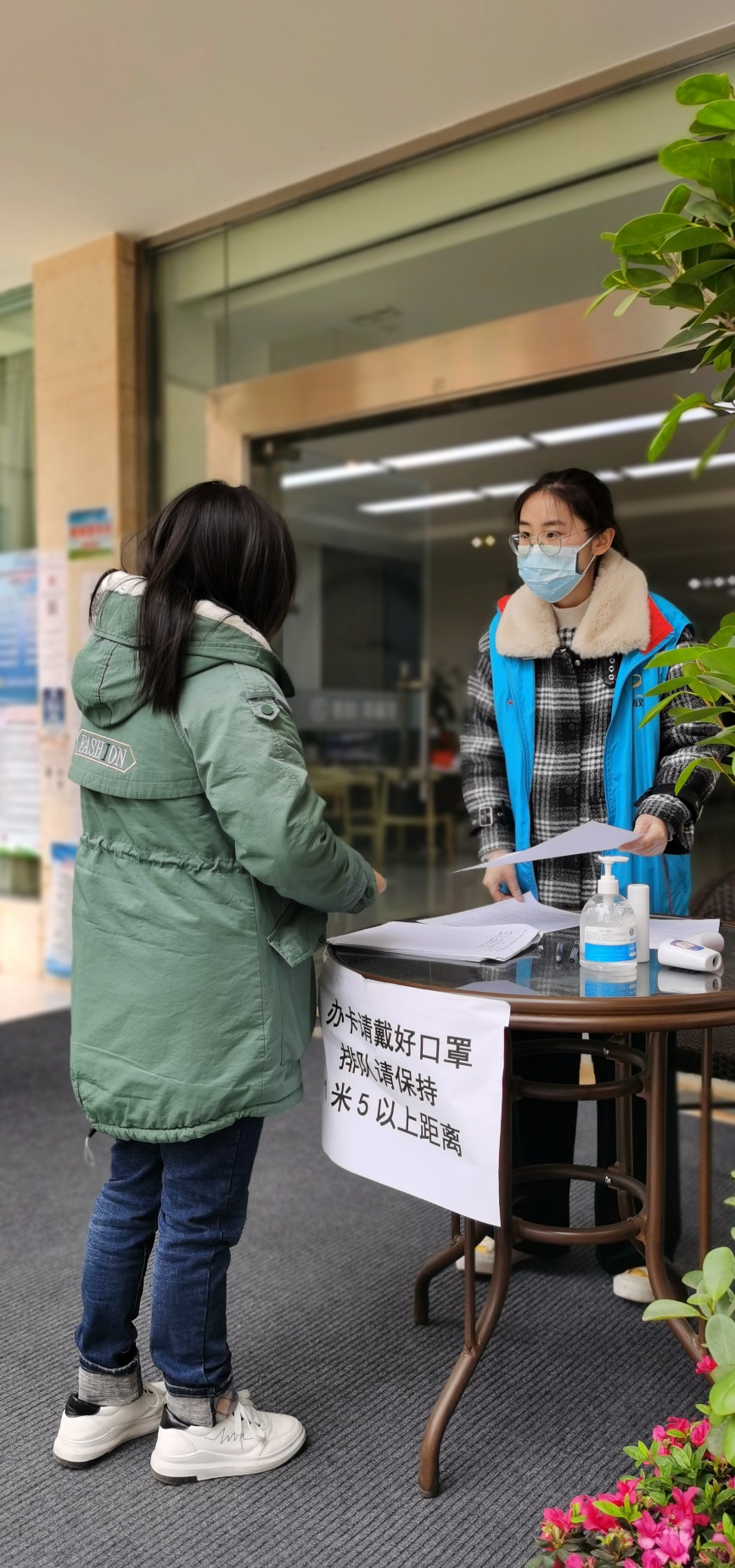 在“去社区战役一线”的号召下,PA视讯集团官网2019级社会工作专业硕士生邓晨响应团中央号召,前往四川省成都市保和街道团结社区党群服务中心报道,成为社区的一名党员义工。为落实疫情期间工人复工的相关政策,促进社区居民生活恢复正常,她在社区党群服务中心登记社区进出人员信息,为前来办理复工健康证的居民测量体温,并解答办理健康证的相关疑问。