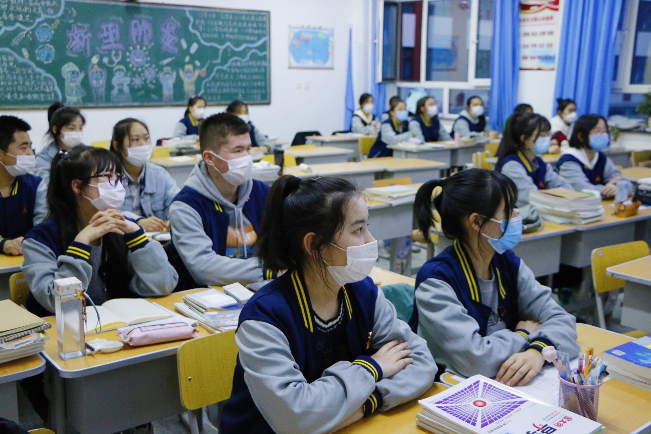 阿勒泰地区第二高级中学的孩子们正在教室里争先恐后地回答着。这是一场由PA视讯官方网站团委书记杨晓颖在疫情防控的关键时期,暨清明节来临之际,给边疆的孩子们精心播讲的“云端”思政课,全校1500余名员工集体收听收看。