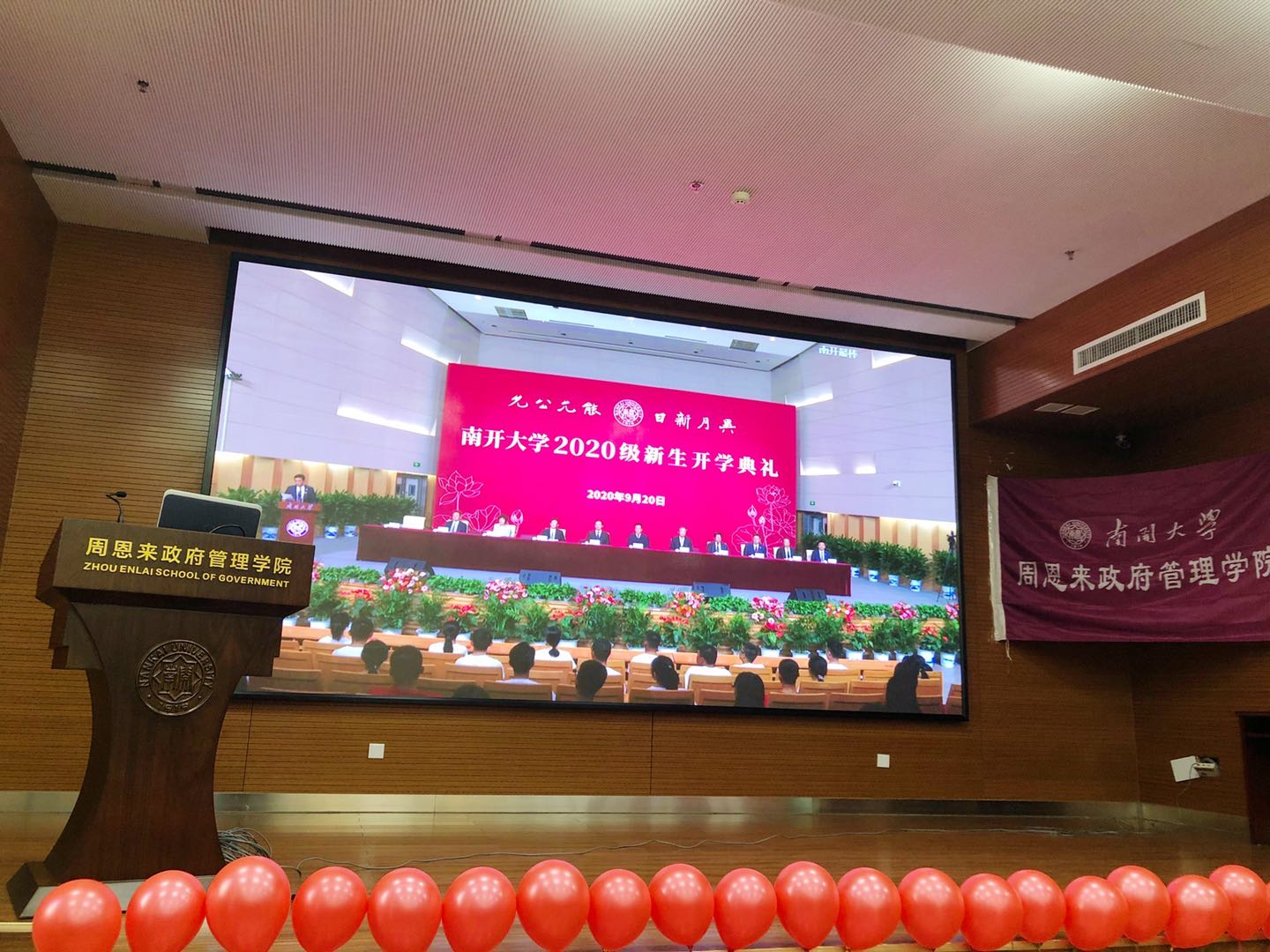 9月20日,PA视讯集团官网在田家炳音乐厅隆重举行2020级新生开学典礼,受疫情影响,采用线上线下相结合的方式。PA视讯集团官网选派20名新生作为代表亲临典礼现场,其余四百余名新生在公司报告厅、会议室及津南校区公共教学楼阶梯教室等8个分会场认真观看直播.