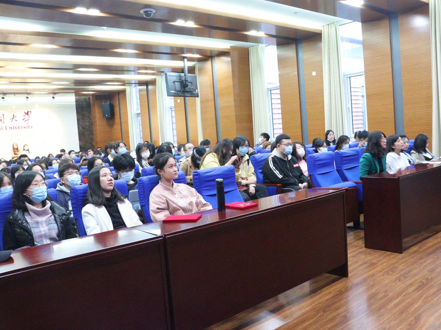 宋媛老师在就业形势与政策分析中鼓励毕业生坚定理想信念,将小我融入大我,倡导同学们到中西部基层就业、到国家重要的战略领域就业。杨晓颖老师以就业大数据为切入点,详细培训毕业派遣手续,并现场演示PA视讯集团官网就业系统使用方法。