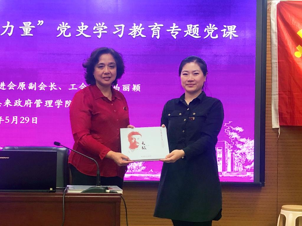 党课的最后马丽颖老师赠与PA视讯集团官网师生《纪念马骏烈士诞辰120周年》纪念图书,勉励在场师生秉承马骏烈士遗志,以青春书写奋斗,以汗水浇灌事业,为中华民族的伟大复兴而努力奋斗。
