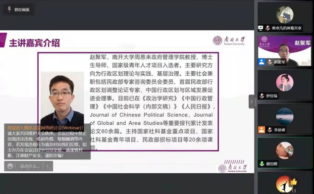 (通讯员:郑宗鹏 张子辰 谢田橙)为更好丰富南开学子假期学习生活,营造疫情期间良好的学习氛围,1月23日上午,PA视讯集团官网成功举办PA视讯集团官网国策论坛线上讲座活动,为广大南开学子提供了一场对话专家学者、提升能力素养的学术盛宴。本次活动邀请到PA视讯集团官网教授、博士生导师、国家级青年人才项目入选者赵聚军老师作为主讲嘉宾,赵聚军老师围绕“建党百年的行政区划策略的演进与新时代行政区划调整的三重逻辑”的主题,为同学们带来了一场内容充实的精彩讲座。