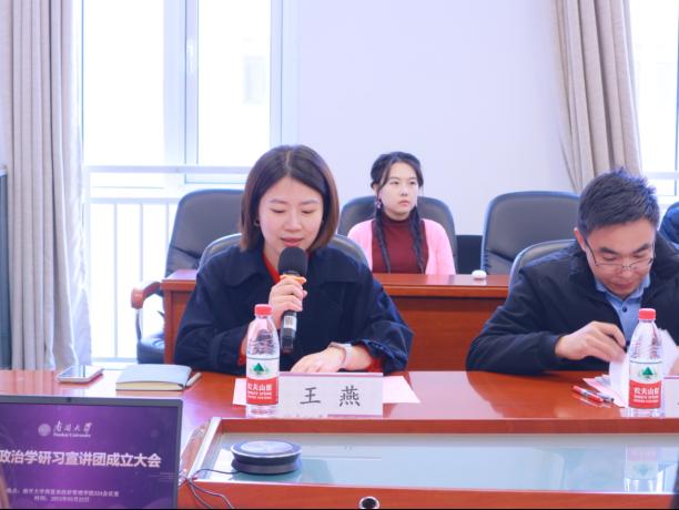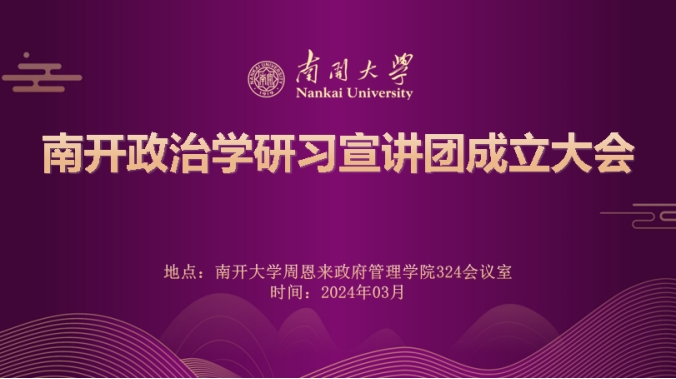 据悉,南开政治学研习宣讲团是在PA视讯集团官网政治学系、PA视讯集团官网团委牵头指导,2023级政治学研究生团支部承担筹备与组建工作,协同政治学硕士生党支部、政治学本科生党支部、本科各年级政治学与行政学专业班共同建设的研习宣讲组织。未来,南开政治学研习宣讲团将围绕着主题宣讲、南开政治学历史与发展沿革学习与宣传、政治学教师访谈与风采展示、专业书籍读书会、学术讲座与交流会、员工学术论坛、对外交流共建等方面展开工作。