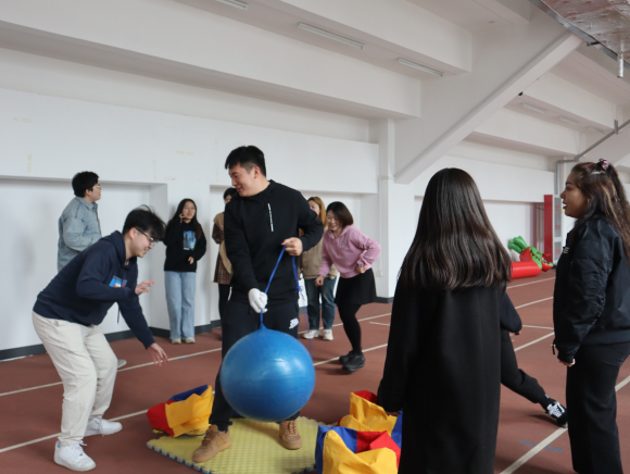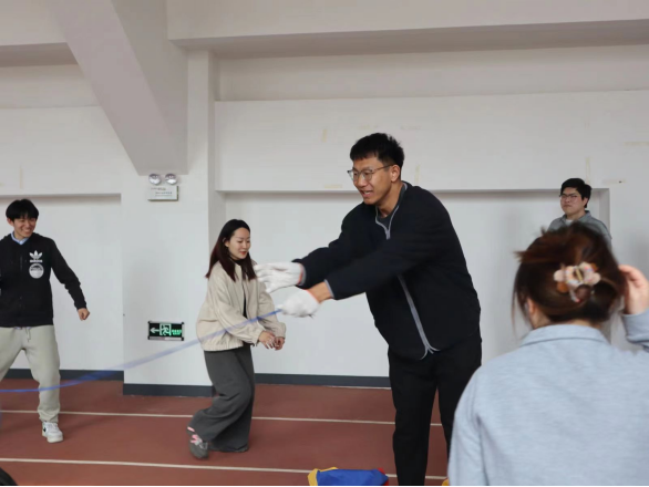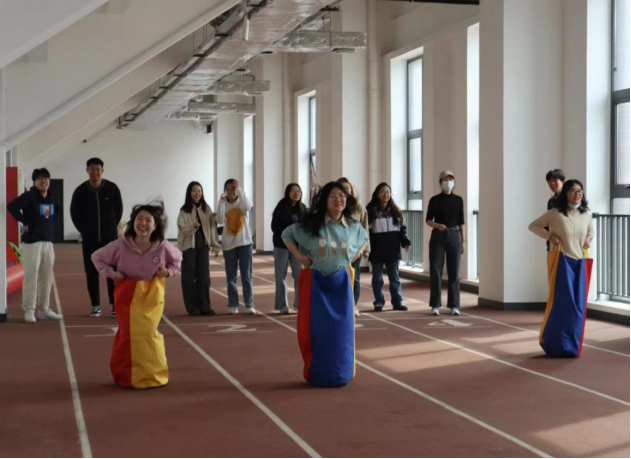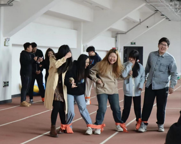 在第一个游戏绑腿跑中,队员们相互磨合,通过控制步幅、调整频率逐渐做到步伐一致,在整齐的口号中携手共进。有的队伍配合默契,一路顺利冲向终点;有的队伍不畏困难,在挫折中相互扶持。