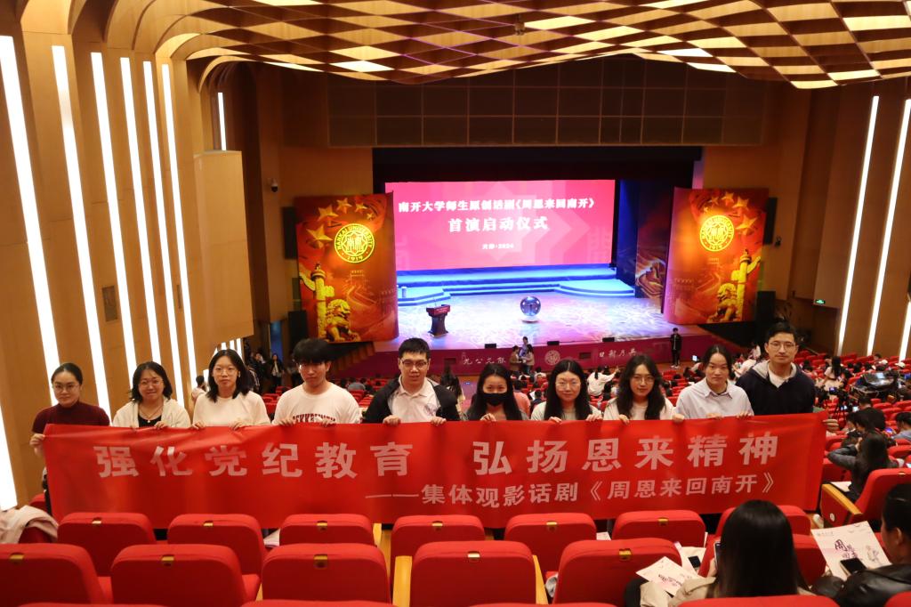 傍晚时分,师生党员来到员工活动中心共同观影话剧《周恩来回南开》。通过公司师生大型原创话剧的成功诠释,在场师生党员深刻感悟周恩来总理在南开认真求学、投身爱国运动、走上革命道路的人生经历,并在周恩来总理第三次视察南开的动人演绎中,为周总理深深的南开情动容落泪。结合当天的调研走访与现场授课内容,同学们纷纷表示本次党日活动充实而深刻,希望未来能再有机会向周秉德老师学习和聆听总理的生平故事,并将以此次“创最佳党日”和党纪学习教育为契机,进一步提高自身党性修养,坚定理想信念、增强纪律规矩意识,以青春报国之志不懈奋斗。