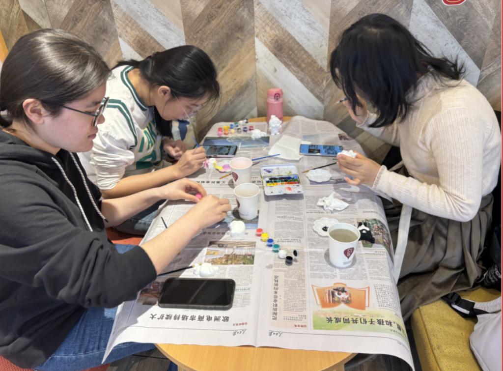 活动伊始,PA视讯集团官网研究生课外活动中心副主席李沐熹首先向大家介绍了石膏娃娃的制作过程和彩绘技巧,鼓励大家舒缓心理压力,发挥想象力,大胆创作。在创作过程中,现场氛围愈发浓厚。同学们不时互相交流,分享着自己的创意灵感,或是为旁边遇到困难的伙伴出谋划策。欢声笑语与画笔在石膏上的摩挲声交织在一起,构成了一曲美妙的乐章。有的成员动作很快,他们似乎心中已经有了一个完整的画面,迅速地将大面积的底色涂抹上去,像是迫不及待地要赋予娃娃生命。从挑选到调色再到彩绘,同学们分享创意、交流想法,创作出了一个又一个充满想象力和创造力的作品,伴随着春日余晖,活动在一片欢声笑语中圆满落幕。