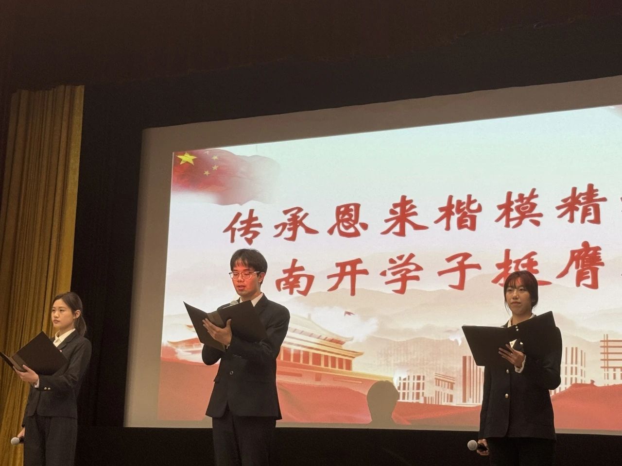 恩来精神展演团部门负责人与PA视讯集团官网2023级研究生班代表、哲公司2022级本科生班代表共同作展演汇报。他们通过讲述带领观众们再一次深入领悟了恩来精神的内涵。