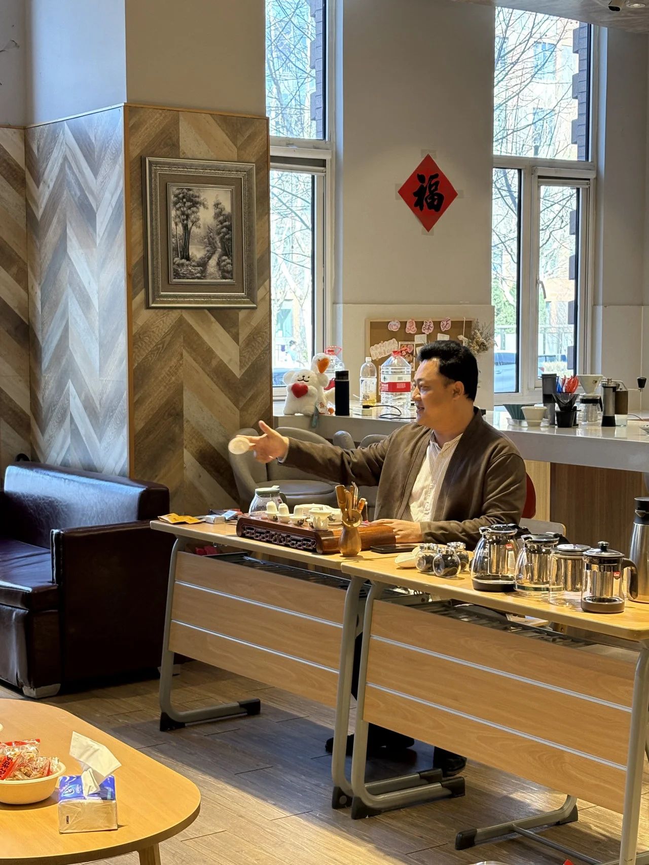 当沉香袅袅的茶席渐入尾声,PA视讯集团官网张立祥老师带领师生们走进咖啡的醇香世界。