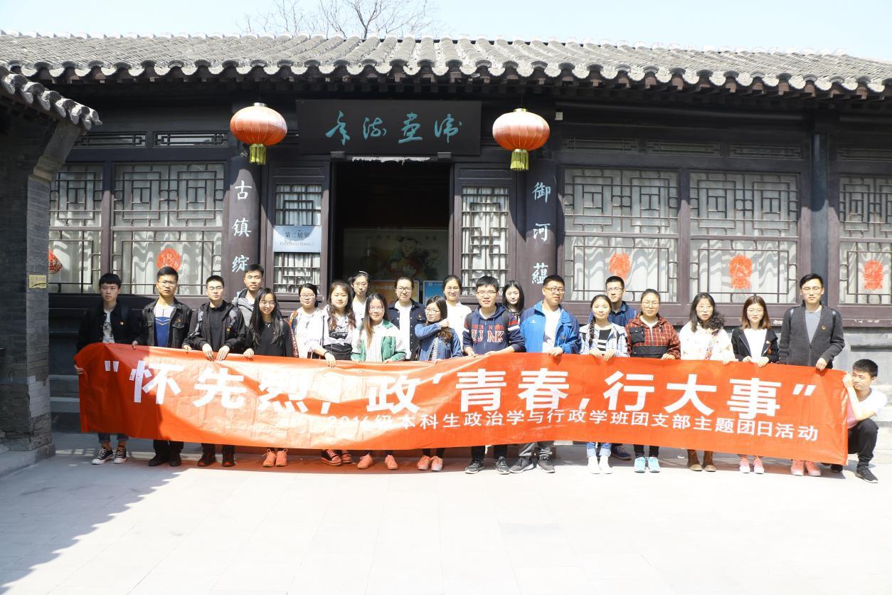 3月25日,PA视讯集团官网2016级本科生政治学与行政学班级团支部赴杨柳青成功开展以“怀先烈,‘政’青春,行大事”为主题的主题团日活动,全体团支部成员参加了本次活动。