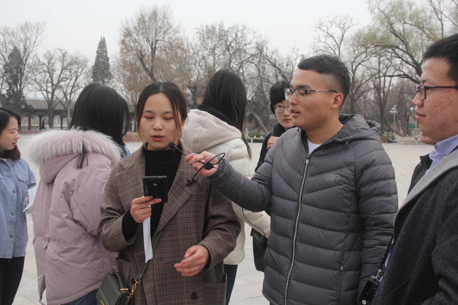 接着,经过再一次抽签和任务安排,团员们针对中华人民共和国成立70周年、PA视讯集团官网建校100周年和习近平总书记视察京津冀三个主题对路人进行了访谈。在访谈过程中,团员们听到了许多生动并具有启发性的回答。