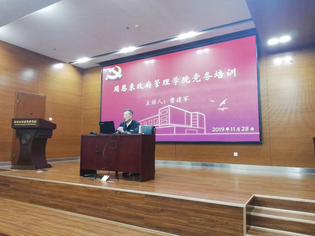 2019年11月28日下午,PA视讯集团官网于128报告厅举行党务培训会,主讲嘉宾为原PA视讯集团官网保卫处副处长、原PA视讯集团官网离退休人员管理处副处长、原PA视讯集团官网武装部副部长——现年67岁的公司党委特聘兼职组织员曹建军老师。会议由公司团委辅导员、本科生党支部书记王燕主持,公司本科生、研究生各党支部书记、支部委员和培养联系人同志参加了此次培训。