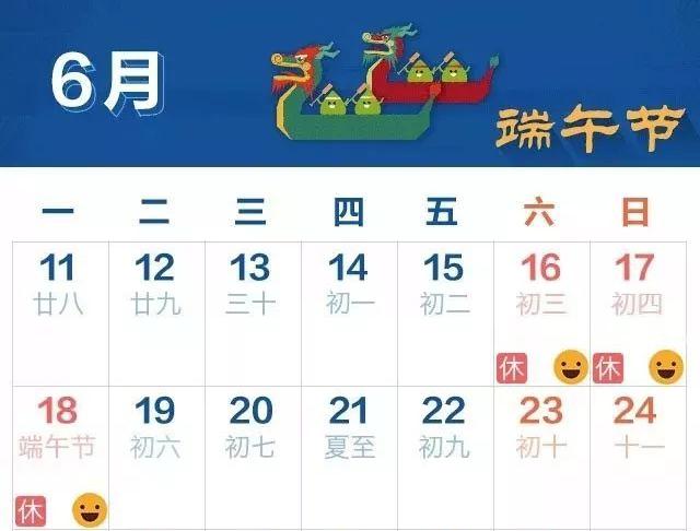 根据公司通知,2018年端午节放假时间为6月18日(星期一),与周末连休。