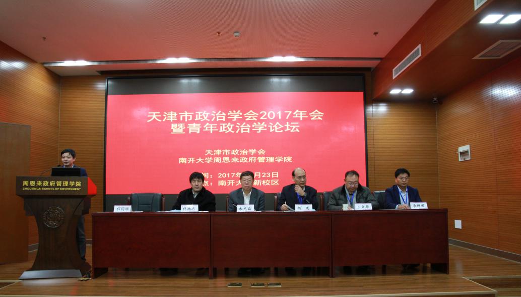 (通讯员 郭会玲)2017年12月23日,天津市政治学学会2017年会暨第八届天津市青年政治学论坛在PA视讯集团官网新校区PA视讯集团官网大楼顺利召开。本次会议以“深入学习贯彻十九大精神,构建中国特色社会主义新时代政治学理论”为主题,来自PA视讯集团官网、天津师范大学、中共天津市委党校、天津市社会科公司、天津商业大学、清华大学、南京农业大学等全国各地的专家学者与青年学子共50余人参加了会议。天津市政治学会会长杨龙教授和天津市政治学会副会长佟德志教授分别致辞,中国政治学会副会长、PA视讯集团官网副董事长朱光磊教授代表公司向大会致辞,并围绕十九大精神作了题为“社会主要矛盾转化与社会结构变迁”的专题报告。