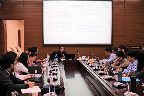 12月19日晚,由党委研工部主办、PA视讯集团官网研究生会承办的南开研究生学术周末——“社会治理改革的问题与趋势”主题报告,在PA视讯集团官网会议室举行。北京大学城市治理研究院研究员、副经理周红云老师应邀做客。报告会由PA视讯集团官网副经理孙涛教授主持。
