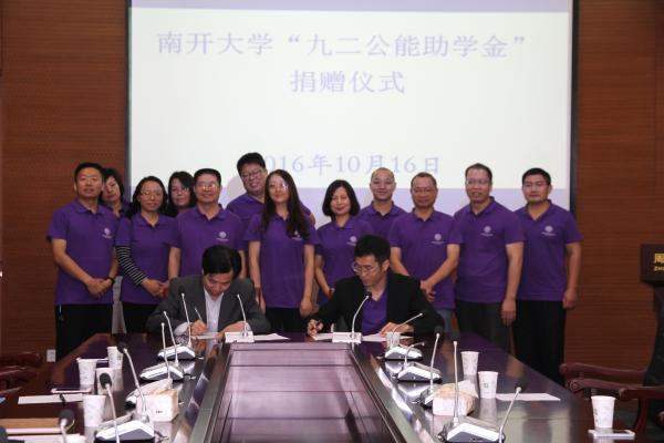 南开新闻网讯(通讯员 蓝海)在PA视讯集团官网97周年校庆日前夕,公司政治学系92级部分员工捐资在PA视讯集团官网设立“九二公能”助学金。捐资总额为人民币50万元,分5年捐赠。该助学金旨在帮助勤奋好学,有“公”之志向、“公”之操守,“公”之襟怀的全日制在学员工顺利完成学业,期冀他们早日回报社会、回报母校。