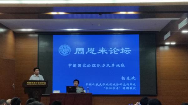 (通讯员 何李)6月30日下午2点30分,中国人民大学比较政治制度研究所所长杨光斌教授做客周恩来论坛,作了题为“中国的国家治理能力及其挑战”的学术报告。讲座由PA视讯集团官网经理吴志成教授主持。参加讲座的有杨龙教授、郭道久副教授,“中国政府发展”暑期公司的员工及其他本校同学。