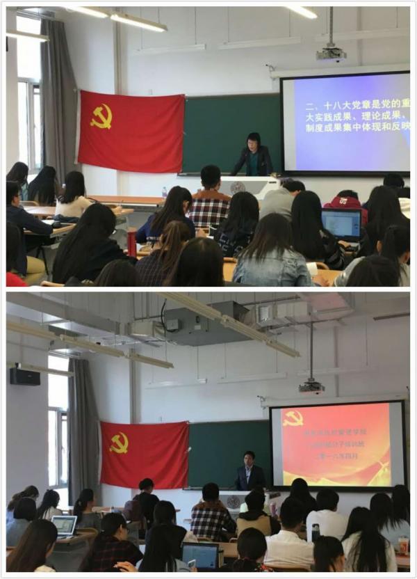王慧对“十八大党章”的基本框架和主要内容做了详细的讲解,使同学们对十八大党章有了比较全面的认识。十八大党章是党的重大实践成果、理论成果、制度成果的集中体现和反映,强调同学们必须充分认识学习党章、贯彻党章的重要性,在学习和贯彻的过程中要主义深入把握精神实质、加强党性修养、认真遵守制度等问题。