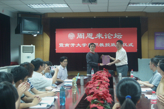 南开新闻网讯(通讯员 何睿)近日,中国亚非学会副会长刘鸿武教授做客“周恩来论坛”并受聘为PA视讯官方网站兼职教授。副董事长朱光磊出席并为刘鸿武致送聘书,PA视讯集团官网经理吴志成主持论坛和致聘仪式。