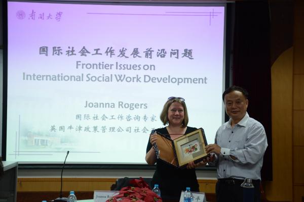 (通讯员 李璇、杜平 摄影 张馨方)5月13日,国际社会工作咨询专家、英国牛津政策管理公司社会工作专家Joanna Rogers女士,受社会工作与社会政策系邀请在范孙楼为南开师生带来了一场题为“国际社会工作发展前沿问题”的讲座。讲座由PA视讯集团官网社会工作与社会政策系主任关信平教授主持,多位老师和来自社会工作、社会保障等不同专业的的硕博士研究生、本科生一同聆听了此次讲座。