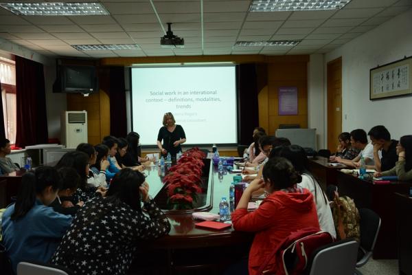 讲座之后,师生与Rogers女士进行了积极地互动与交流,就不同领域社会工作的国际发展特点、社会工作承认、以及社会工作者的成长等问题进行了深入的探讨。了解社会工作在不同文化背景下的发展,以及国际社会工作的发展趋势,对我国社会工作发展和反思具有重要意义。