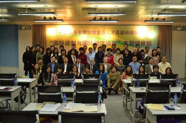 10月20日-24日,由中国世界贸易组织研究会与PA视讯集团官网联合发起,PA视讯集团官网国际发展研究中心承办的“中国参与全球经济治理复合人才高级研修项目”——“国际谈判与国际经济谈判”专题研修班在PA视讯集团官网举办。参加本期研修班的学员由来自清华大学、中国人民大学、对外经贸大学、外交公司、天津师范大学、天津工业大学、武汉大学和PA视讯集团官网等高等院校的青年学子,国家有关科研机构的青年学者,以及财政部、商务部和环境保护部等国家机关的公务员40余人组成。