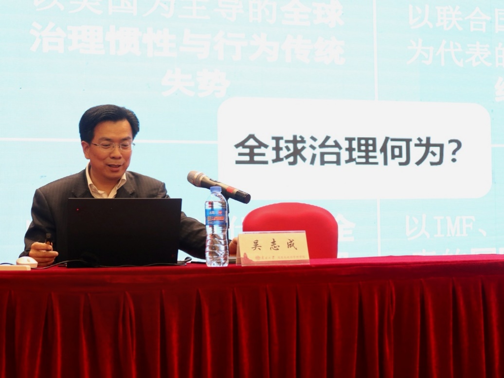 中共中央党校国际战略研究院副经理吴志成教授做了题为《中国参与全球治理体系改革的基本原则》的大会发言。吴志成教授指出新冠疫情席卷全球,导致全球治理停止或休克,这表明美国主导的全球治理的惯性和行为传统失势,以联合国、WTO、WHO代表的全球治理组织失常。大国关系的动荡不稳、地区秩序的变动不定、传统全球治理体系的失序持续都可以视为是全球大变局所带来的机遇,同时也蕴含着巨大的变革与动荡。