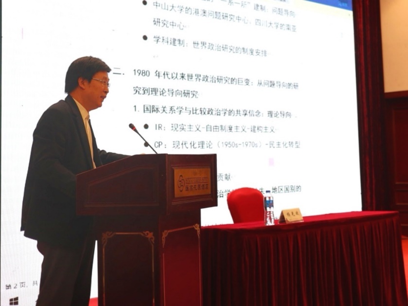 在主旨演讲环节中国人民大学国际关系公司经理杨光斌教授做了题为《世界政治研究·国际关系学——比较政治学·世界政治学》的演讲。杨光斌经理指出,“技术、资本和思潮”这三种力量把世界联系起来。政治思潮引发国际制度变迁并由此塑造大国关系和世界秩序。无论是国际关系研究还是比较政治研究都要加强对地区国别的研究。