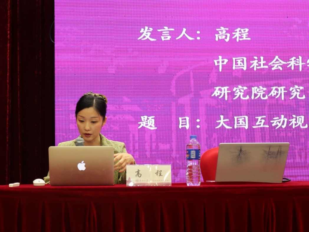 《当代亚太》执行主编、中国社会科公司亚太与全球战略研究院高程研究员做了题为《大国互动视角下的中国周边秩序》的大会发言,提出周边地区通常是历史上陆地崛起大国的战略重心和地缘崛起的依托带。中国在周边地区需要处理多层次的大国国际关系。中国崛起受到东亚、中亚、南亚三组不同性质大国关系的约束,以多样化的周边大国关系为分析视角,有助于中国在周边采取差异化的策略,这需要在非传统安全领域和安全领域建立一个兼容互补的大国治理模式。