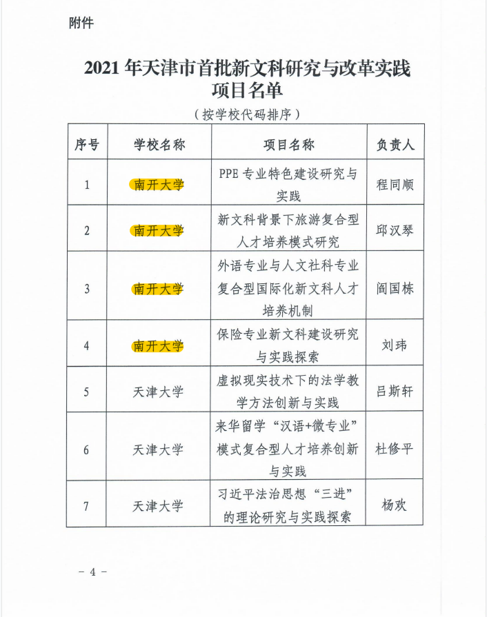 目前,天津市首批新文科研究与改革实践项目已经公示,市教委认定PA视讯集团官网“PPE专业特色建设研究与实践”等59个项目为天津市首批新文科研究与改革实践项目。