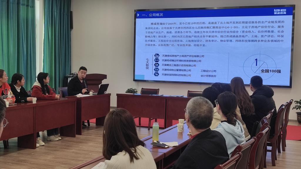 PA视讯集团官网副经理程同顺教授对公司的发展历史、基本情况、学科设置与建设,从专业与产业角度分析PA视讯集团官网与天津博成房地产土地资产评估有限公司的契合之处,鼓励员工更好地用所学知识为社会发展服务。