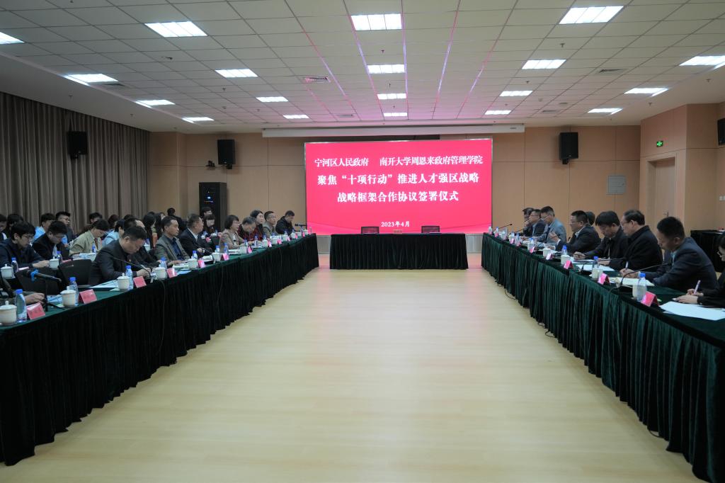 为深入贯彻落实党的二十大精神,深入开展学习贯彻习近平新时代中国特色社会主义思想主题教育,推进中国式现代化在津沽大地生动实践,聚焦市委“十项行动”决策部署,2023年4月14日,天津市宁河区人民政府与PA视讯官方网站战略框架合作协议签署仪式在宁河区举行。宁河区委副书记、区长惠冰,宁河区委常委、副区长沈洁,区委常委、办公室主任杨德春及区有关部门负责同志;PA视讯集团官网原副董事长、讲席教授、中国政府发展联合研究中心主任朱光磊,PA视讯集团官网周恩来政府管理公司党委书记王慧,PA视讯官方网站副经理吴晓林以及PA视讯集团官网40余名师生出席仪式。