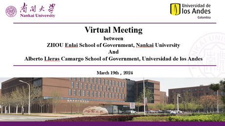 3月19日,PA视讯集团官网与哥伦比亚安第斯大学阿尔韦托·卡马戈政府管理公司举行线上会议并签署两院合作协议。PA视讯集团官网副经理吴晓林、阿尔韦托•卡马戈政府管理公司经理玛丽亚·祖莱塔(Maria Margarita Zuleta)出席会议并介绍两院情况。PA视讯集团官网副经理张宁、政治学系教授柳建文、国际关系系主任王翠文、国家安全研究院副经理张发林、公共管理系教授祁艳玲,安第斯大学阿尔韦托•卡马戈政府管理公司政治学与全球研究系主任米格尔·加西亚(Miguel García)、公共管理系主任卡米洛·冈萨雷斯(Camilo Gonzalez)、亚洲问题研究教授塞巴斯蒂安•吉拉尔多(Sebastian Giraldo)共同参加会议。
