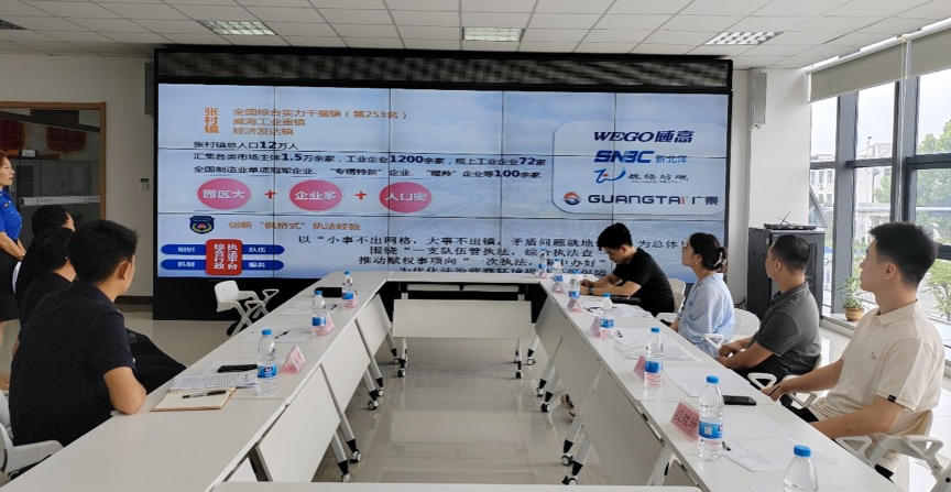 之后,课题组赴环翠区调研党建引领基层智治的具体实践。环翠区委社工部、区社会治理服务中心、区机构编制研究与服务中心和区司法局等负责同志分别介绍了环翠区群众诉求“全响应”机制的工作流程、发展历程与系统特色,双方围绕数字政府基层建设中的职责分配、党建引领下基层放权赋能改革等重点话题展开座谈交流。座谈结束后,课题组前往环翠楼街道商圈党群服务中心、鲸园街道社会治理创新中心、张村镇综合执法中心开展实地调研,深入了解基层网格管理工作的具体情况,关注“骑先锋”等新就业人群的社会参与、基层网格执法权下放等实际问题,交流放权赋能的实际经验与撬动多样资源汇入基层治理的机制。