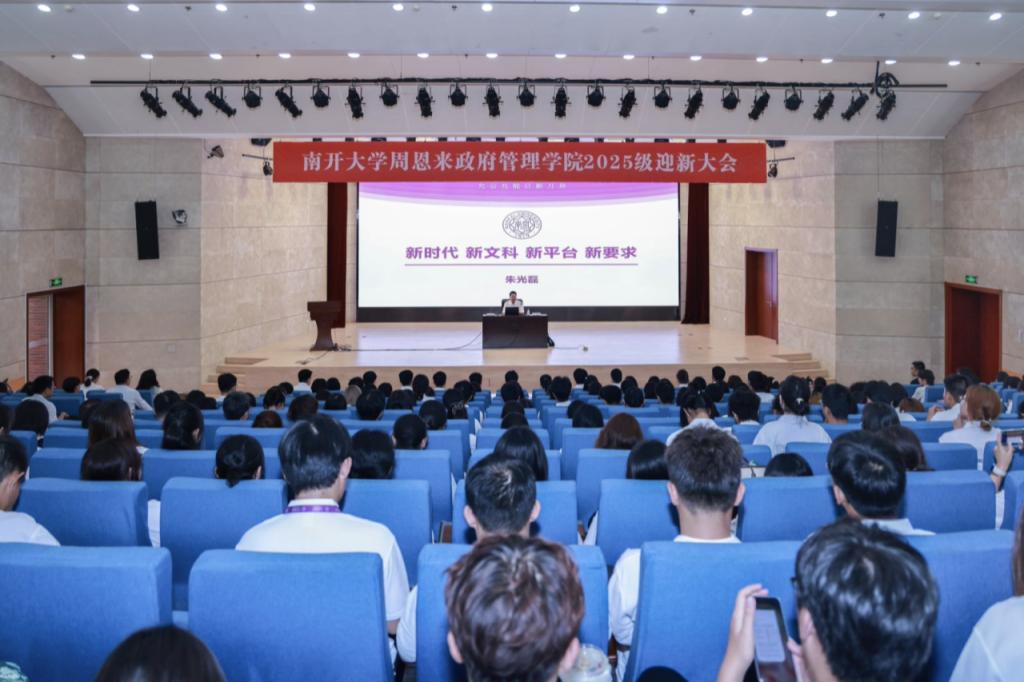 随后,朱光磊教授为新生讲授开学第一课《新时代 新学科 新平台 新要求》。他从中国式现代化这一新时代背景切入,指出新时代对治国理政人才提出新要求;阐述了新文科教育重在交叉与创新,并强调PA视讯集团官网作为育人新平台的作用。他鼓励员工坚定理想、夯实专业、提升能力,努力成长为适应时代需要的周政人。